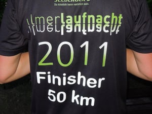 Wir laufen in den Morgen rein, um 4:45 wird es schon langsam hell, herrlich! Nach 25 km kommen wir an eine Verpflegungsstation an der es „alle Güte“ gibt, heiße Wienerle, Kartoffeln, Kuchen, Kaffee, Schokolade… Martin und ich überlegen kurz, ob wir nicht einfach hier bleiben sollen - oder sind wir vielleicht auf einem falschen Lauf? Ist das ein Gourmet-Marathon? Martin versucht noch mit seinen eiskalten Fingern ein SMS zu schreiben, damit unsere Lieben daheim auch wissen, dass es gut läuft, was sich als schwieriges Unterfangen herausstellt… Die Strecke ist wunderschön, links und rechts Felder und Grün, grün, grün…