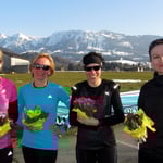 Bald darauf trafen im Minutentakt die weiteren LäuferInnen in Lingenau ein. Der letzte Läufer benötigte ein wenig mehr als dreieinhalb Stunden und kam glücklich ins Ziel. Alle Läuferinnen und Läufer wurden heuer im Ziel persönlich von der Bürgermeisterin Annette Sohler in Lingenau empfangen. Annette, ein Dankeschön fürs Dabei sein. Alle Damen wurden zudem mit Blumen im Ziel empfangen und freuten sich über diesen kleinen Frühlingsgruß.