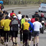 Im Startbereich auf dem ersten Streckenabschnitt wurde der Läufertross durch die Polizei begleitet und auch heuer zeigten sich die Autofahrer wieder sehr rücksichtsvoll. Ein Dankeschön an die Exekutive für ihre jährliche Unterstützung. Anschließen übernahm dann ein Begleitfahrtzeug die Führungstruppe.