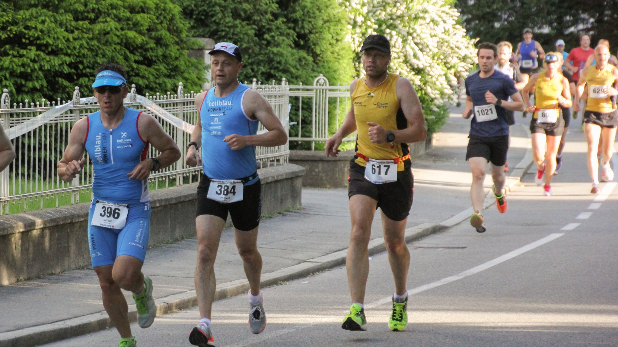 So standen fünf Läuferinnen und neun Läufer bei herrlichem Laufwetter am Freitagabend am Marktplatz am Start, um in acht Runden um den Vereinsmeistertitel zu laufen. Damit alle die gleiche Chance haben, wurde auch heuer wieder der Altersbonus zur Laufzeit angerechnet.