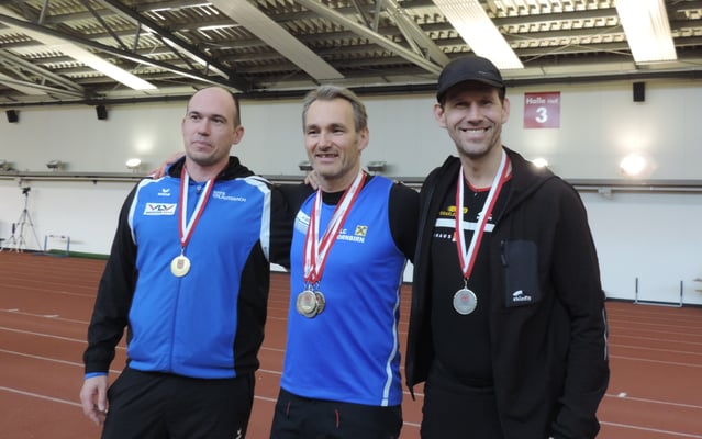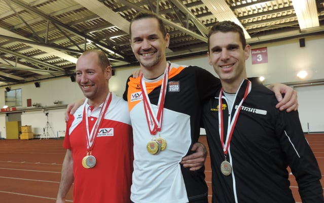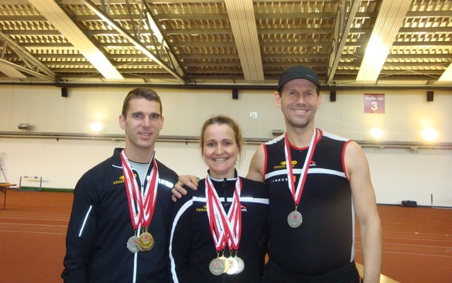 Bianca, Robin und Thomas nahmen in den unterschiedlichsten Disziplinen abseits der Laufstrecke statt, und heimsten in der Halle einige Titel ein.