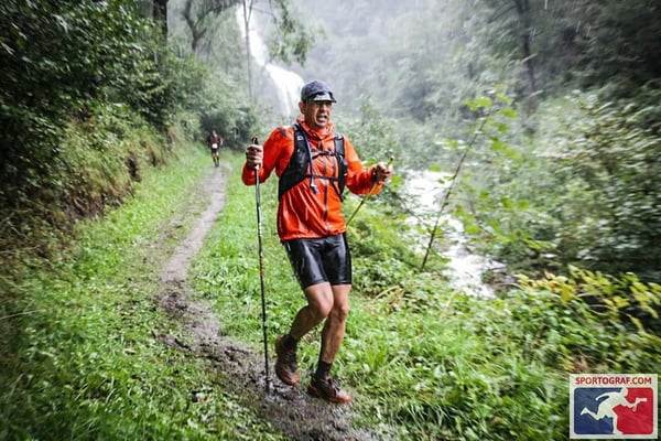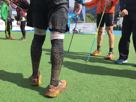 Während des Laufes regnete es fast durchgehend, außer den zwei Sonnenfenster von ca. 45 Minuten unterwegs und beim Zieleinlauf. Die Laufstrecke war sehr fordernd. Nässe von oben und unten: überflutete, rutschige und matschige Trails waren zu bewältigen.