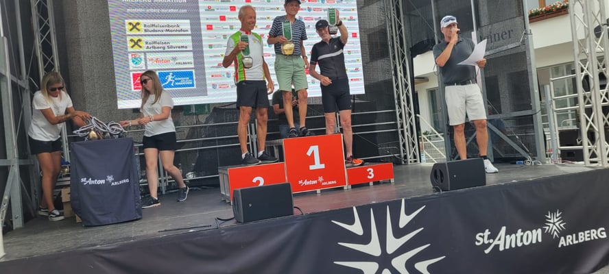 Christoph brauchte 4:32:48 und durfte sich bei der Siegerehrung AK55 auf die "3" stellen.