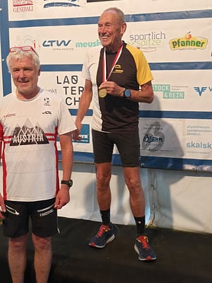 Als Horst Mayer, der sich die Landesmeisterkrone in der AK 80+ verdient hat, bei der Siegerehrung auf das Podest kam, begannen die Zuschauer ihn mit Standing Ovations zu feiern. Ohne die Leistungen der SiegerInnen in den anderen Altersklassen schmälern zu wollen, widerfuhr Horst die höchste Anerkennung des Publikums. Als ich ihn nach